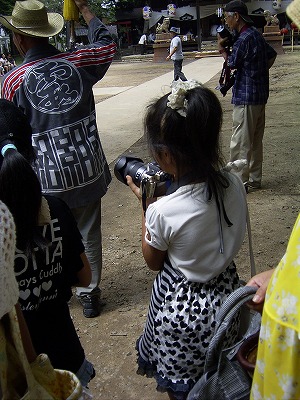 金のパナ一眼を構える有望なカメラ女子。