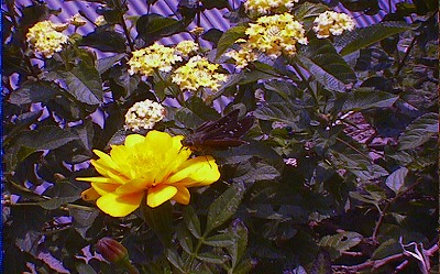 こういった紫や青の被写体の色再現はかなり怪しい。