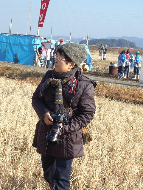 ニコンUにGニッコールの望遠ズームを装備するシニア女子兵。