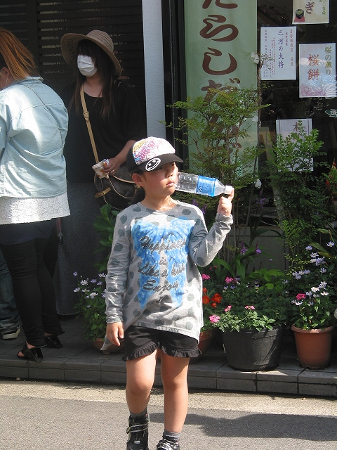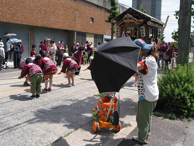 赤ん坊には厳しい初夏の日差し。