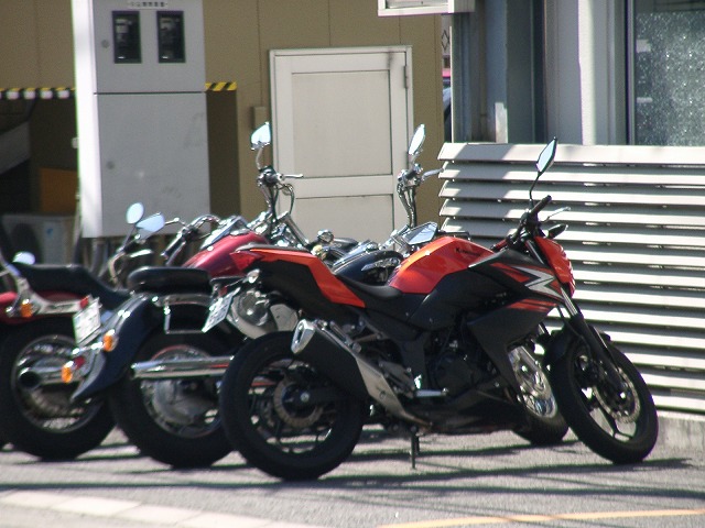望遠側で赤いカワサキを撮る。