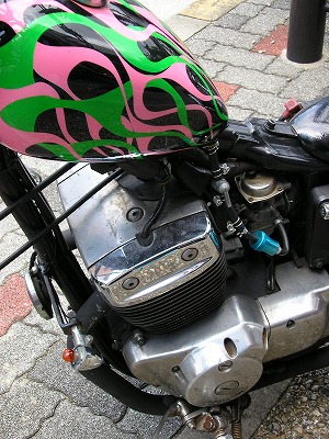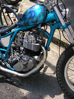 青い単車のベースはSRだと思うのだが、ここまで弄るならハーレーを買えばいいのに。