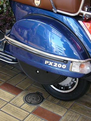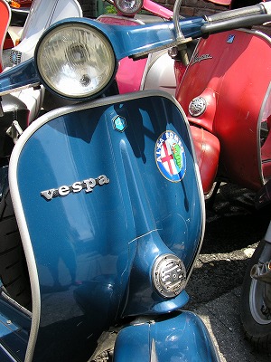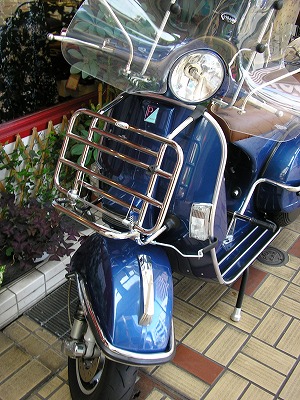 この青いベスパは看板娘。キャリアがかっこいい。
